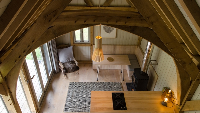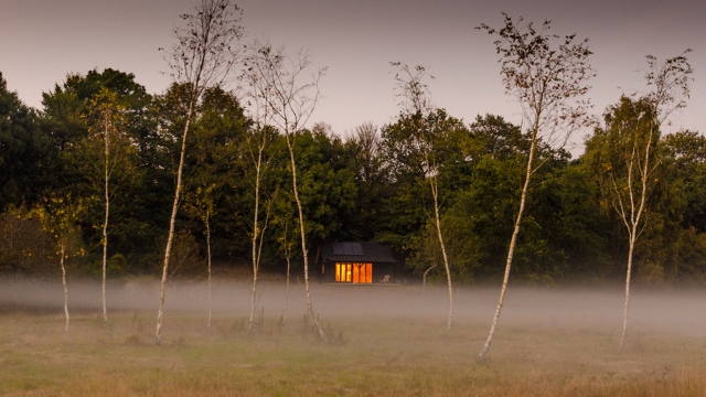 Izdvojena koliba u šumi je projektovana sa minimalističkom estetikom, i nudi vanmrežni luksuzni život u engleskoj pošumljenoj dolini Teig na severnoj ivici grada Dartmura.
