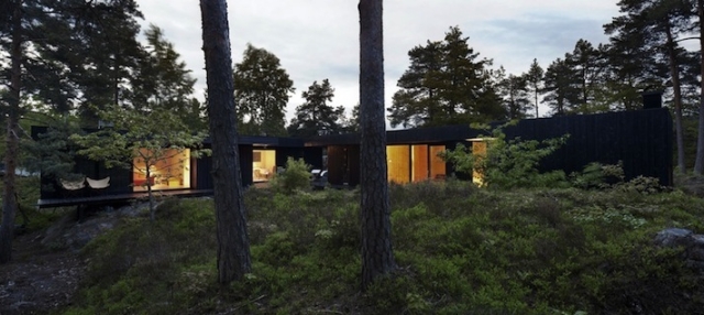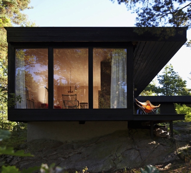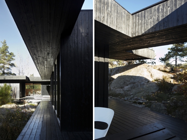 Velika terasa je idealna za sunčanje i razgledanje prelepe prirode sa obiljem krošanja i fjordom koji okružuje usko poluostrvo. Arhitekta je metamorfozno pretvorio tradicionalni švedski letnjikovac u živopisnu, udobnu i kontemplativnu kuću koja deluje idealna za provođenje odmora.