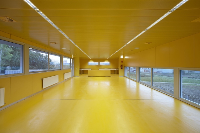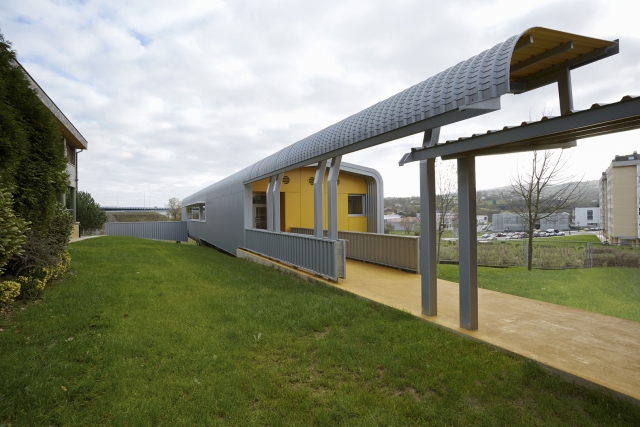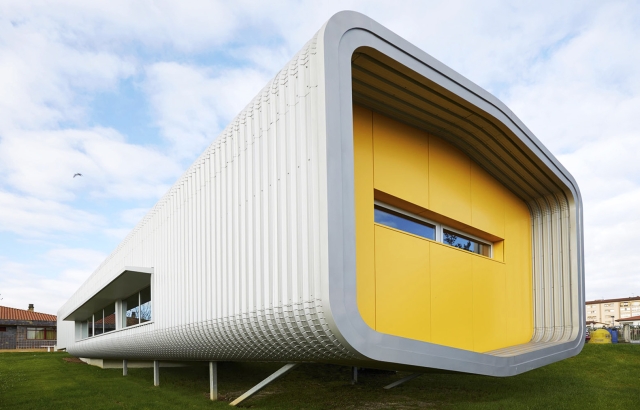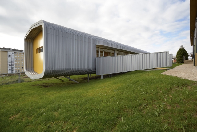 Ova cevasta kantina jedne osnovne škole u Ovijedu u Španiji je izgrađena od četiri prefabrikovanih modula za samo 90 dana. Španski arhitekta Migel Angel Garsija-Pola Baljeho je osmislio projekat radi pružanja novog prostora za školsku kuhinju, trpezariju, skladišnog prostora i toaleta na vreme za novu školsku godinu.