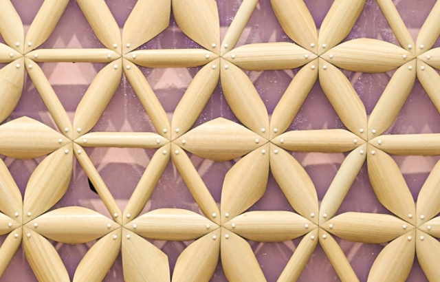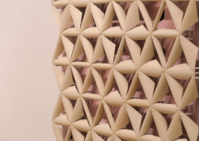 Ovo je dovelo do razvoja laminiranog proizvoda, koji poseduje usendvičene slojeve tkanine, tankog filma i furnira. Drveni furnir apsorbuje vodu, proširuje se preko materijala i krivi ili ravnja u zavisnosti od proizvodne tehnike. „Korišćenje inherentnih svojstava, ovaj bio-mimetički materijal detektuje vlagu i menja svoj oblik automatski, bez mehaničkih struktura ili električnih elemenata“, navodi Čen.