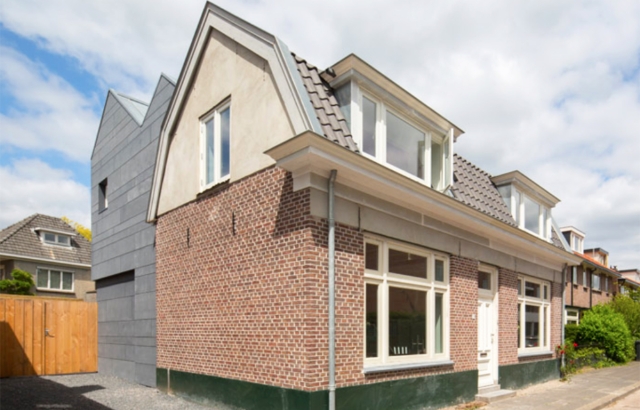 Arhitektonski biro BYTR iz Roterdama je projektovao ovo proširenje slobodnostojeće kuće iz 19. veka u gradu Zajst, Holandija, koje kombinuje dva različita prostora ispod jednog krova. Mansardna arhitektura i moderni zabatni krovovi stvaraju novu kompoziciju koja je nedivljiva sa ulice.