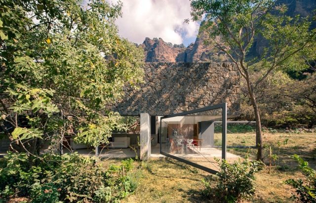 Planinski dom sa kamenim zidovima u Meksiku ima velika staklena vrata koja se rotiraju sa zidova i otvaraju prema okolnom pejzažu, mešajući novo i staro, otvoreni i zatvoreni prostor.