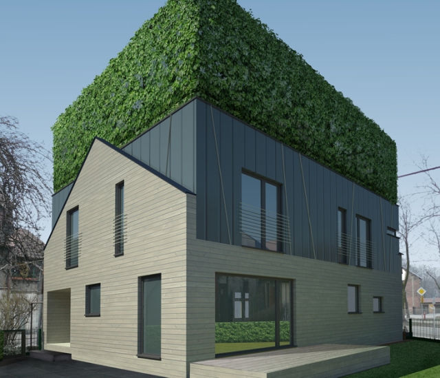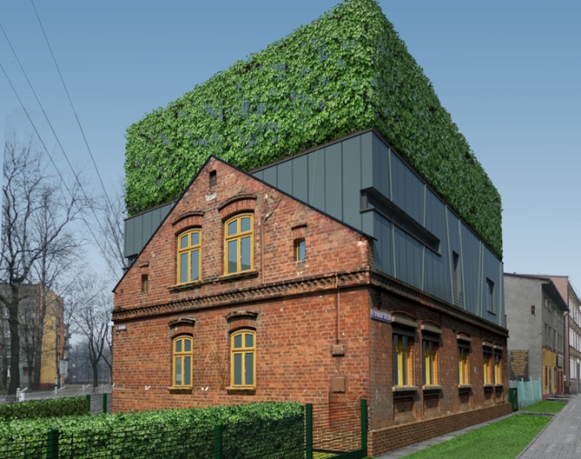 Kuća D - Urbani sendvič - je jednoporodična kuća od cigli koju krasi bujna zelena oaza na krovu, a smeštena je u gusto naseljenom poljskom gradu Zabrze. Krov sadrži terasu skrivenu od okolnih ulica debelim velom lišća.