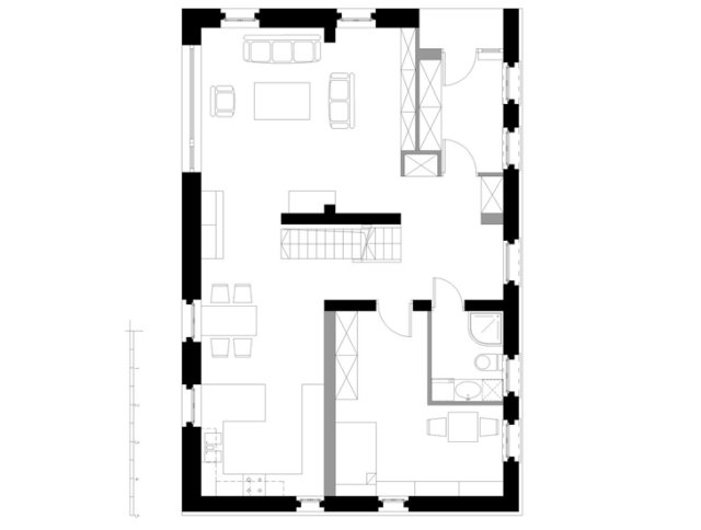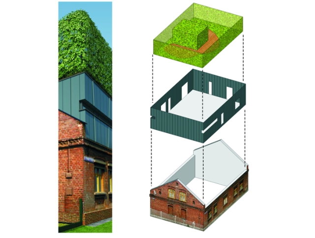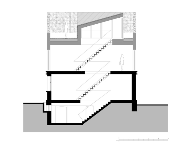 Arhitekte su odlučile da grade vertikalno, menjajući tradicionalni oblik krova kući od cigle. Uklanjanjem prvobitnog krova, oni su dodali moderan sprat, čime su napravili pravougaoni oblik kuće.