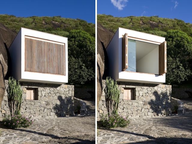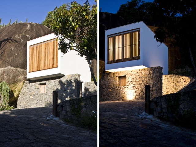Jednospratni bela struktura se nalazi na 100 metara iznad nivoa mora, okružena ogromnim stenama. Sa gornjeg sprata se pružaju zadivljujući pogledi na kanal Sao Sebastiao i to kroz drvene žaluzine spavaće sobe.