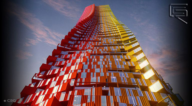 Arhitektonski biro iz Šenžena (Kina), CRG Arhitekte, predstavio je jedan interesantan projekat izgradnje nebodera, koji, iako primamljivo deluje, teško da će ikada biti realizovan. U pitanju je zamisao da se par nebodera, koji bi bili smešteni u jednom od najvećih sirotinjskih kvartova u Indiji, izgradi korišćenjem skladišnih kontejnera.