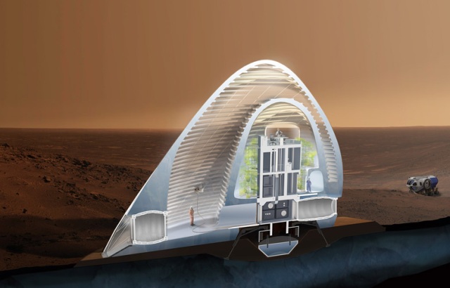 Njihov projekat bio je jedan od malobrojnih koji ne podrazumeva korišćenje regolita – rastresitog zemljišta i kamena, pronađenog na crvenoj planeti – već upotrebu ledenog omotača koji bi bio u mogućnosti da „zaštiti unutrašnjost prebivališta od radijacije i istovremeno pruži potpuni užitak života iznad površine zemlje“.