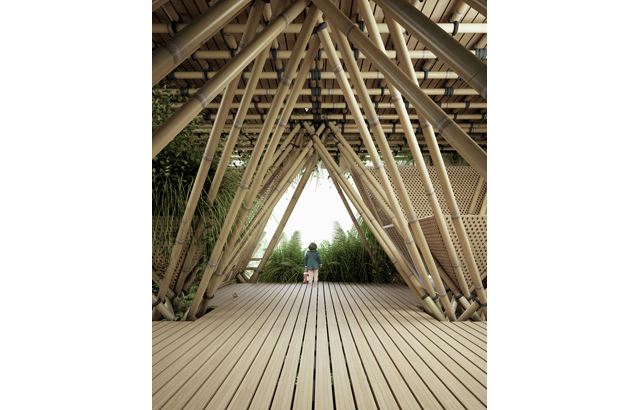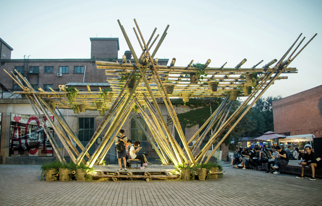 Za svoj paviljon na pekinškoj nedelji dizajna, studio nije koristio niti jedan ekser ili šraf, a sav korišćeni materijal je u potpunosti moguće reciklirati. Takođe, bambus koji je korišćen u celom procesu, nije ni na jednom mestu bušen. Svi spojevi su vezani konopcem, čime su štapovi bambusa neoštećeni pa se mogu ponovo koristiti. „Ovaj projekat posmatramo u skladu sa Cradle to Cradle konceptom gradnje, koji predlaže određeni holistički, ekonomski, industrijski i društveni okvir koji teži stvaranju reciklažnih, samoodrživih sistema,“ objašnjavaju iz studija.