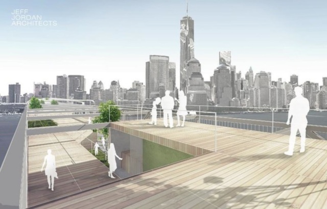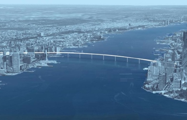 Njihov predlog se sastoji iz pešačkog mosta sa trakama za bicikliste, koji bi bio dugačak skoro 1,5km i visok bar 60m kako bi brodovi mogli prolaziti ispod njega. Iskoristio bi postojeći nasip Železnice Pensilvanija u Džerziju, sa jedne strane i južni deo Menhetna – park „Battery“, sa druge.