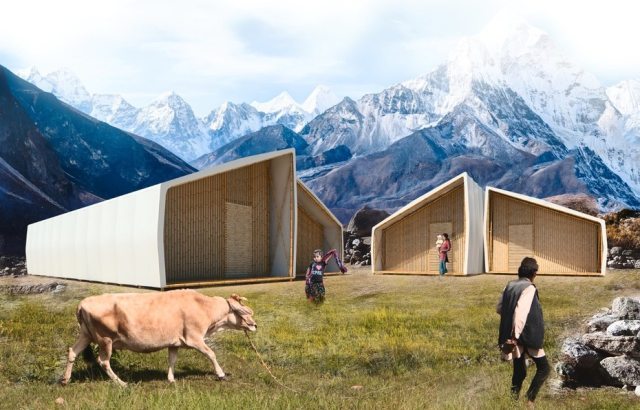 Sklonište prigodnog naziva „Temporary Shelter in Nepal“ (Privremeno sklonište u Nepalu) je, za razliku od gore navedenih, prilično jednostavno sklonište što, paradoksalno, u određenim situacijama može biti pozitivno posmatrano. Projektovano od strane Čarlsa Laija i Takehikoa Suzukija iz firme Architecture for the Mass, ovo sklonište mogu za tri dana sastaviti lokalni nekvalifikovani radnici.