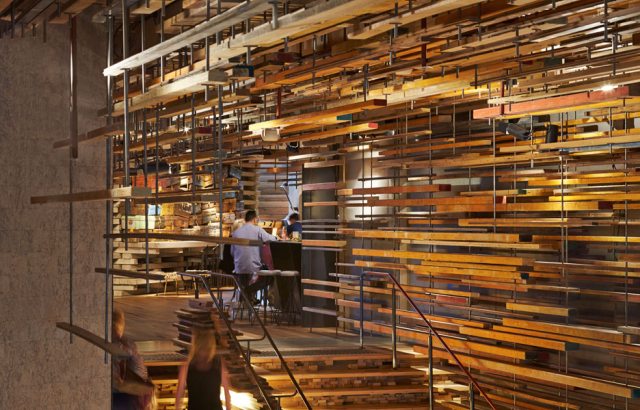 Studio za dizajn sa sedištem u Melburnu, dobio je nagradu za najbolji svetski enterijer za 2015-u godinu na „Inside Festival“-u prošlog meseca, za projekat koji sadrži na hiljade recikliranih dasaka koje su pričvršćene oko zidova i plafona čeličnim šipkama.