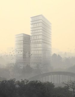 U regionu gde najviše temperature leti prelaze 44oC, izgradnja stambenih blokova od čelika deluje kao znak ludila. Ali upravo ova vrsta dizajna primenjena je na projektu West Bangor u Kalkuti, Indija - SymHomes Mk1 (ilustracija gore). Dokumentacija za početak izgradnje predata je na odobrenje u decembru 2008, a rešenje je do tog trenutka već dobilo nekoliko nagrada za inovativni pristup održivoj gradnji. |