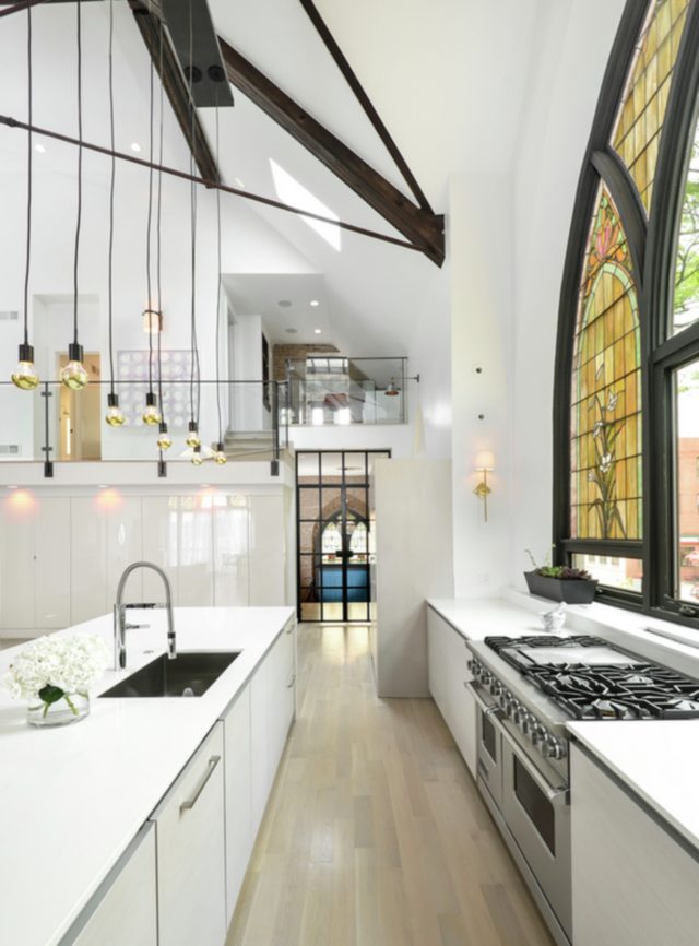 Nakadašnja crkva u Čikagu, u državi Ilinois, sa sedam spavaćih soba zadržala je originalne detalje kao što su vitraži na prozorima, cigle koje se vide, potpregnuto potkrovlje i zvonik, integrišući sve to sa modernim pogodnostima i stilovima.