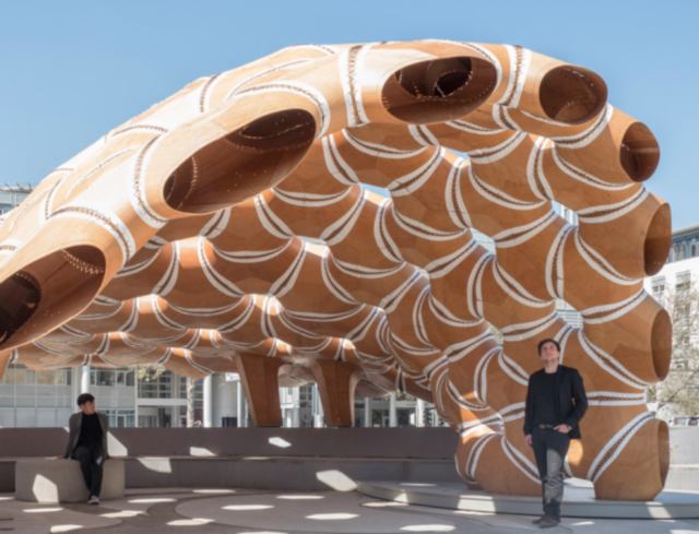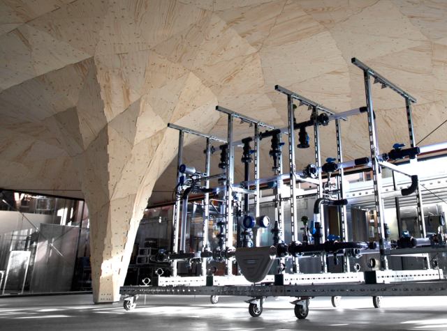 Dizajneri su radili sa „RhinoVAULT“ - plag-inom za program 3D-modelovanja „Rhino“ – da razvoju efikasnu drvenu konstrukciju koja se sastoji od 225 jedinstvenih drvenih ploča, koje su obrađene od strane robota pre nego što su sastavljene.