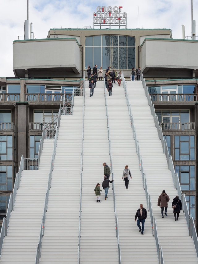 Dana 16. maja gradonačelnik Roterdama, Ahmed Aboutaleb je otvorio „The Stairs“ u čast obeležavanja 75. godišnjice od obnove Roterdama u Holandiji. 180 stepenika koji vode iz „Stationsplein“, izvan Glavne stanice u Roterdamu („Rotterdam Central Station“), počeli su da koriste posetioci da bi se popeli do krova „Groot Handelsgebouw“, kultne zgrade u istoriji posleratne obnove grada. U toku prvog dana „The Stairs“ je posetilo 7850 ljudi. Aktivan mesec tek dolazi, uključujući i filmske projekcije, dešavanja i umetničke događaje. „The Stairs“ će ostati otvorene do 12. juna i ulaz će biti besplatan za posetioce od 10:00 do 22:00 č.