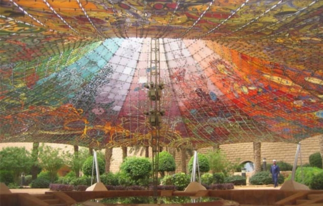 Ottov izbor materijala: mrežna konstrukcija za izgradnju i pločice dozvoljene su na strukturi „the Diplomatic Club Heart Tent“ kako bi se sve uklopilo sa unutrašnjim vrtovima „Tuwaiq Palace“ u Rijadu u Saudijskoj Arabiji.
