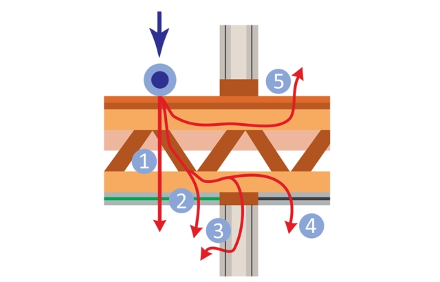 Po podu se korača, premešta nameštaj, ispadaju i udaraju predmeti koji kreiraju udarni zvuk, a on se potom prenosi preko poda na okolne zidove i dalje kroz konstrukciju objekta. Na taj način se udarci koji su nastali čuju i nekoliko spratova iznad ili ispod.