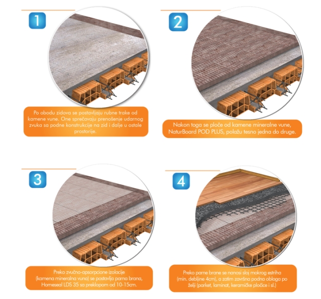 Rešenje leži u plivajućoj podnoj konstrukciji sa kamenom mineralnom vunom kao izolacionim materijalom.
