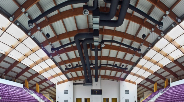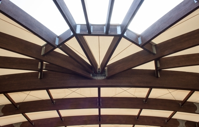 Drvene konstrukcije od lepljenog lameliranog drveta omogućavaju impozatnost elemenata konstrukcije uz izbegavanje osećaja težine. Drveni nosači ne traže dodatnu obradu to jest konstrukcija je kvalitetan deo enterijera. Uz posebne zahteve kao što je brušenje i dodatno premazivanje postiže se dvostruki efekat - noseća konstrukcija i enterijerski kvalitetan deo objekta.