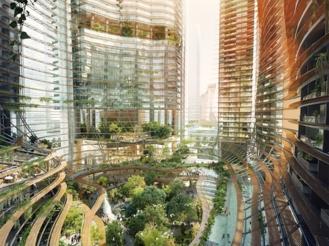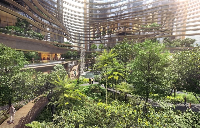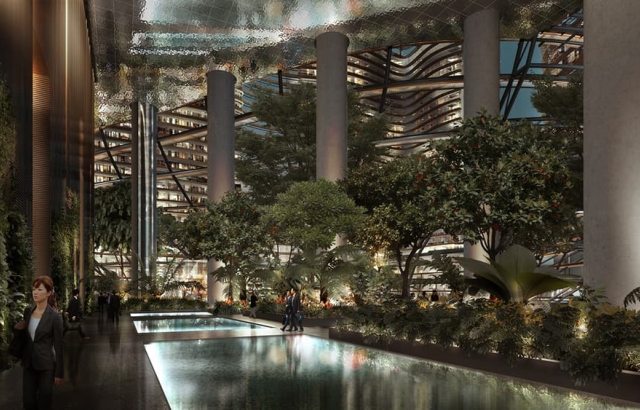 Mešavina tropskog drveća i biljaka će se prostirati na više nivoa, pod uslovom da se dodatni prostor poveća za 25 posto. Nalaziće se otvori ili čistine između nebodera i „nebeskih vrtova“ da bi se poboljšao protok vazduha i stvorila prijatna mikroklima u vrtu, čemu će sam projekat doprineti.