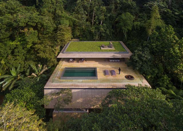 Bazen na krovu ovog betonskog stambenog objekta, projekat brazilske firme Studio MK27 nalazi se u gustim krošnjama primorske prašume u São Paulu.