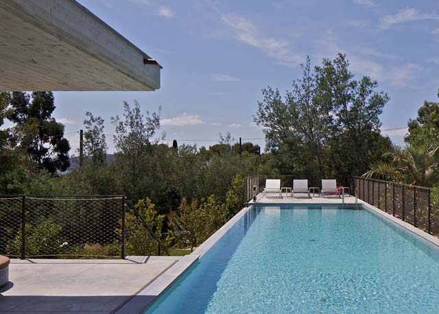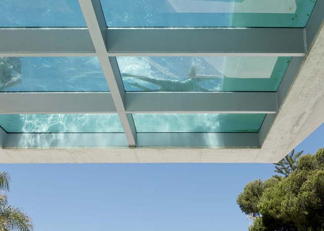 Bazen na krovu sa staklenim nosačima poda pored ulaza u ovu kuću, projekat holandske firme Wiel Arets Architects, nudi uzdignuti pogled ka Sredozemnom moru.