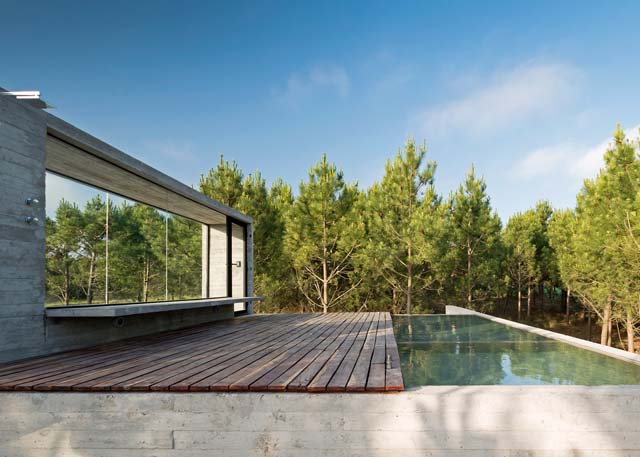 Zastakljena kutija podržana od strane bazena i dela za sunčanje viri iz krova betonske kuće za odmor u Argentini, koju je arhitekta Luciano Kruk dizajnirao za sebe i svoju devojku. Više o ovome pogledajte ovde.