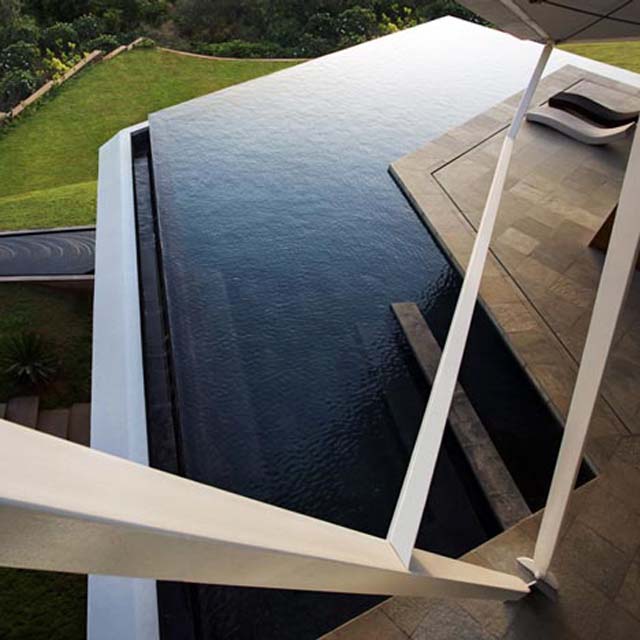 Projekat firme Walker Workshop, kuća u Kaliforniji za koncertog violinistu ima „beskonačni“ bazen koji se proteže uz spoljne ivice terase ispod grana jednog od zaštićenih stabala hrasta. Više o ovome pogledajte ovde.