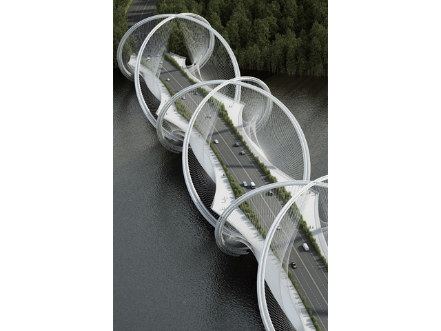 Iz firmi Penda i Arup radili su zajedno na projektovanju i dizajniranju dvostruko-spiralne konstrukcije koja će da podrži 452 metara dugi most.