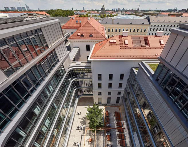 Zgrada zauzima površinu od 45.000 m² i obmotana je sa 16.000 kvadratnih metara staklenom fasadom. Ima novo pristupačno prizemlje, sa novom javnom pešačkom stazom koja prolazi kroz nju i povezuje centar Minhena sa delom gde su gradski muzeji i u okviru njega se takođe nalazi zeleno unutrašnje dvorište, kafić, restoran i fontana.