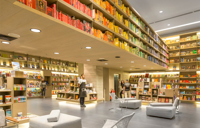 Knjige su raspoređene po boji, a ne po naslovu na gornjim policama ove knjižare u Rio de Žaneiru koju je projektovala firma iz Sao Paula Studio Arthur Casas. Više o ovome pogledajte ovde.