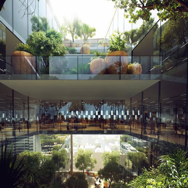 Terase će zajedno pružati pogled od 360 stepeni na okolna područja i takođe će pomoći ventilaciji unutrašnjih prostorija. Unutrašnji dizajn ima višestruke veze sa spoljašnjim, a takođe će se tu nalaziti i fleksibilne i međusobno povezane unutrašnje prostorije koji će biti prilagodljive za budući razvoj Banke.