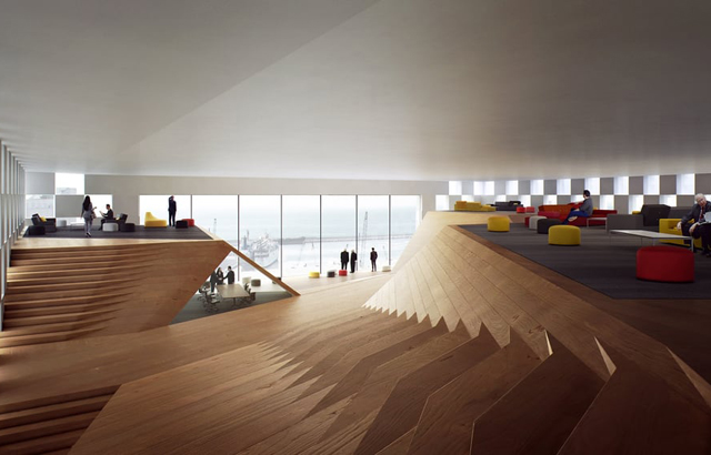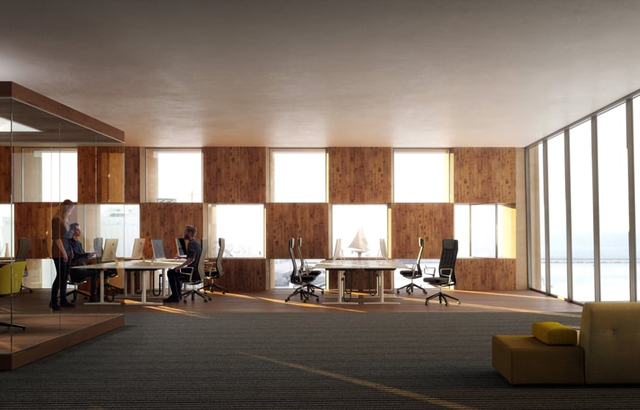 Privatne, administrativne prostorije su u gornjem delu zgrade. Pored stvaranja dovoljno radnog prostora, iz firme Snøhetta su nastojali da stvore ambijent koji je fokusiran na zajednicu. Oko radnih prostorija su spoljne terase, za koje se nadaju da će postati mesta društvenih aktivnosti i druženja za one koji rade u zgradi.