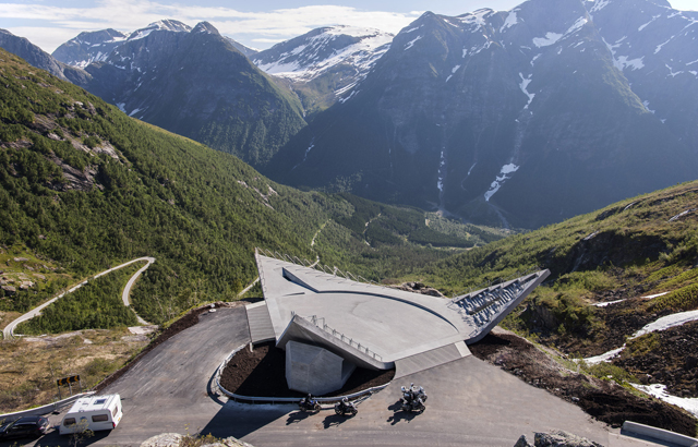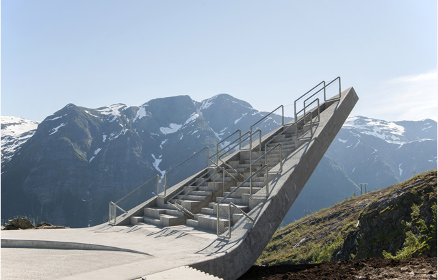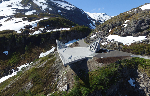 Projekat firme CODE „Utsikten“ je velika, trouglasta betonska platforma smeštena na desnoj strani puta. Platforma je debljine 80 cm, ali deluje kao da se „odmara“ lagano na vrhu terena sa podignutim uglovima nalik krilima koji proviruju spolja i prema gore u vazduhu. Betonska platforma u Utsiktenu je kreirana kako bi se stvorilo odgovarajuće mesto za zaustavljanje gde mogu da stanu svi koji tuda prolaze. Automobili voze skroz do dela sa pogledom a posetioci se mogu kretati između ćoškova kako bi doživeli spektakularan prizor iz različitih uglova.