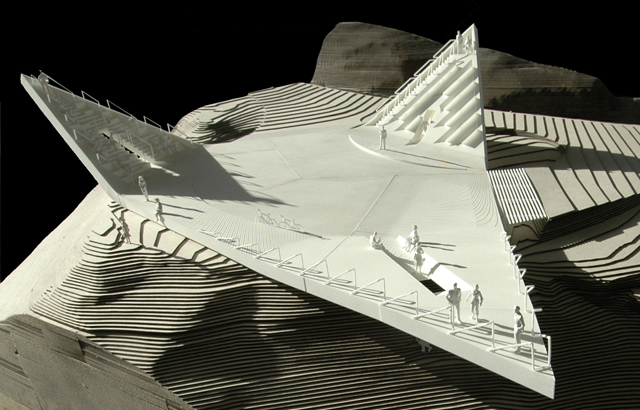 Kako bi se obezbedio optimalan plasman gotovog projekta i iskoristili različiti kvaliteti lokacije, arhitekte su uradile skicu u punom obimu na licu mesta. Uz pomoć dizalice i užadi, konstrukcija je izgrađena uz pomoć žice u nekoliko krugova pre nego što je konačno prebačena u 3D model, crtež i gotov proizvod.