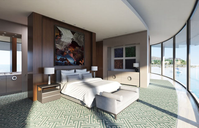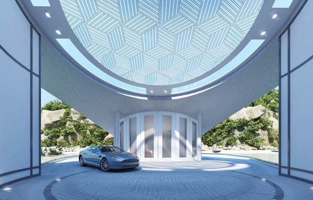 Veliki prostor koji čini „palubu“ će imati dvorište i garažu za dva automobila, uz dodatak beskonačnog bazena, đakuzija, kamina i doka za glisere.
