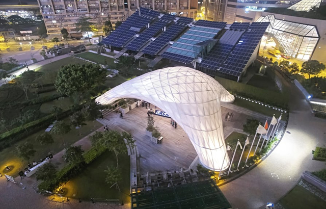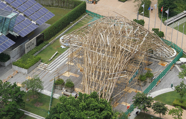 Izgrađena je korišćenjem 473 velikih štapova bambusa, koji su savijeni na licu mesta i ručno spojeni međusobno metalnom žicom pomoću tehnike vezivanja skela od Cantonese bambusa