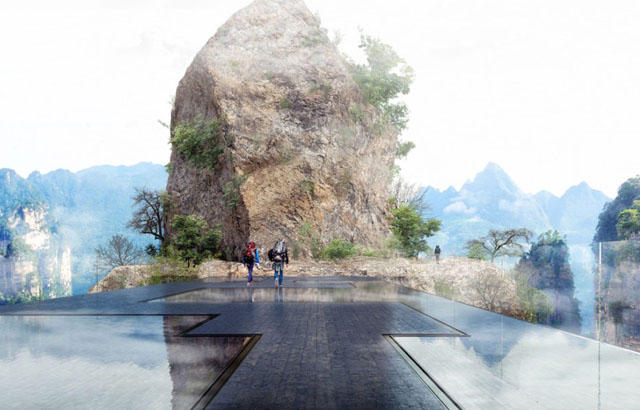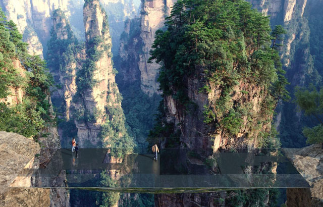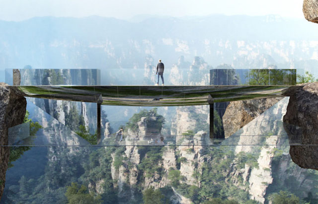 Iskonski avanturisti i posetioci Zhangjiajie u kineskoj pokrajini Hunan će uskoro imati još jedan zapanjujući most koji će gledati ka planinama nalik onim iz filma „Avatar“. Martin Duplantier Architectes (MDA) i Daqian Landscape Architects pobedili su na konkursu za izgradnju pešačkog mosta koji visi visoko iznad stenovitih predela. Dizajniran u obliku eliptičnog diska, most bi trebao da bude sagrađen od reflektujućeg nerđajućeg čelika i crnog kamena pokrivenog vodom kako bi konstrukcija bila ogledalo okoline i imala efekat kao da nestaje u vazduhu.