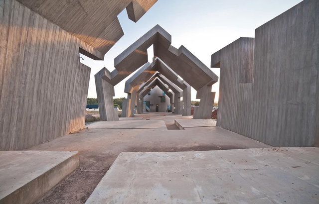 Veliki projekat uključuje opsežan predeo. U centralnom delu je red od 11 objekata nalik kućama koje počinju od potpuno formirane i kako se ide dalje tako su one sa sve manje delova. Ovo simbolizuje uništavanje i gubitak života.