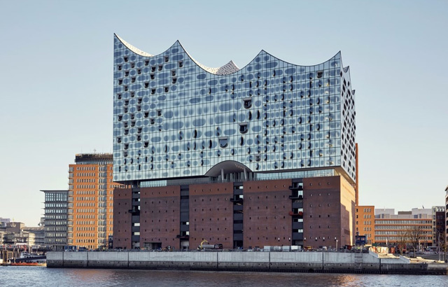 „Elbphilharmonie“ je smeštena na vrhu nekadašnjeg skladišta na obalama reke Elbe u Hamburgu u Nemačkoj i predstavlja izuzetnu koncertnu dvoranu koja uključuje i hotel kao i 45 privatnih apartmana. Projekat je firme Herzog & de Meuron.