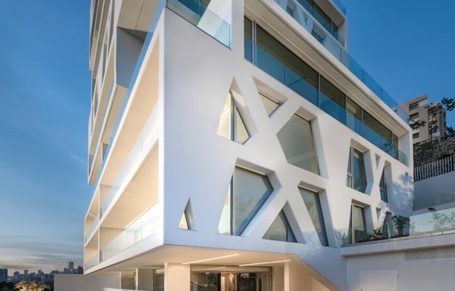 Stanovi se mogu pohvaliti velikim terasama s prekrasnim pogledom na Sredozemno more i grad. Parking se nalazi u podzemnoj garaži, dok veliki deo zgrade impresivno „visi“ iznad glavnog ulaza.