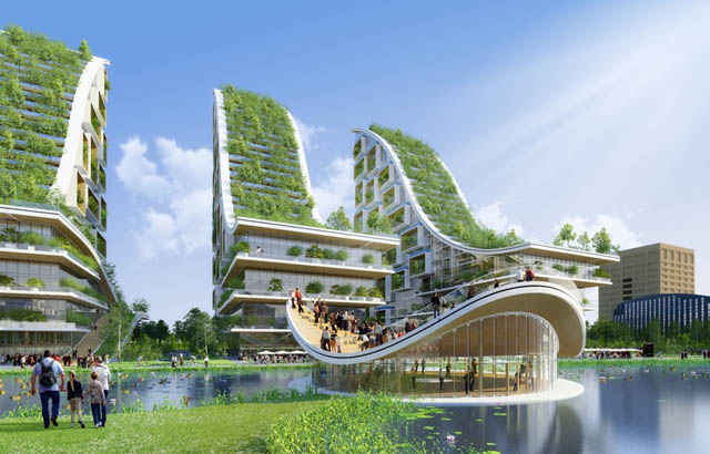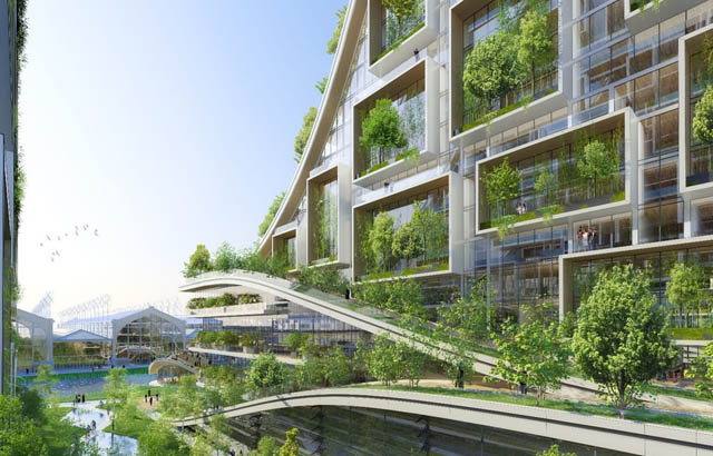 Najznačajnija karakteristika ovog projekta tiče se izgradnje tri nova nebodera koji će biti pokriveni zelenilom, nešto nalik „vertikalnoj šumi" - kao što su „Bosco Verticale“ ili Callebautov „Agora Garden“. Sa ukupnom spratnom površinom od 85.000 kvadratnih metara, zgrade neodređenog oblika nalik skakaonici bi bile maksimalne visine 100m. Krov bi bio pokriven solarnim panelima, dok bi se balkoni koristili za uzgajanje voća i povrća.