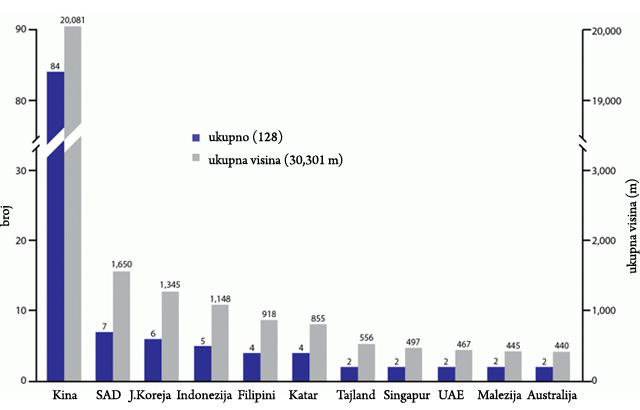 Ova statistika pokazuje da je Kina devetu godinu zaredom prva po izgradnji nebodera u svetu.