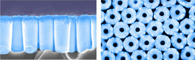 Materijal je nastao polaganjem nizova nanocevi napravljenih od naizmeničnih slojeva cink oksida i aluminijum-dopiranog cink oksida – visine oko 1.730 nanometara i prečnika oko 650-770. U početku su nanocevi kreirane na čvrstoj silicijumskoj podlozi,a kasnije su prebačene u tanak, providan elastični polimer kako bi se stvorila konačna verzija materijala.