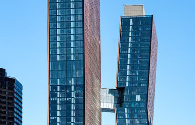 „American Copper Buildings“ čine dve kule, od kojih će jedna imati 41 a druga 48 spratova. Sudeći prema firmi koja izvodi radove JDS Development Group, prepoznatljiv dizajn pod uglom nije tu samo iz estetskih razloga, već se njime postiže i veći pogled ka moru. Svejedno, oni izgledaju fantastično, a biće interesantno za lokalno stanovništvo da ih gledaju kako menjaju boju tokom vremena jer bakar oksidira.