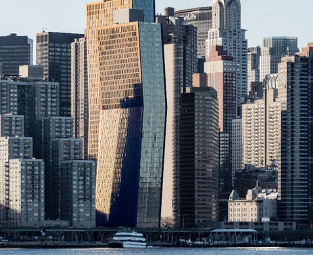 „American Copper Buildings“ je projekat firme SHoP. Nalaziće se na Menhetnu gde je puno impresivnih nebodera ali bezobzira na tu činjenicu ipak će se isticati i izdvajati od ostalih. Pokriveni sa 1,9 miliona kg bakra, ovi luksuzni stambeni objekti su nakrivljeni, na takav način da izgleda kao da plešu. Kada se krenulo sa gradnjom mislilo se i na rizik od poplava ali i na to da oni koji žive u njima imaju neometan pristup elektičnoj energiji bez obzira da li mreža preko koje se snabdevaju radi ili ne.