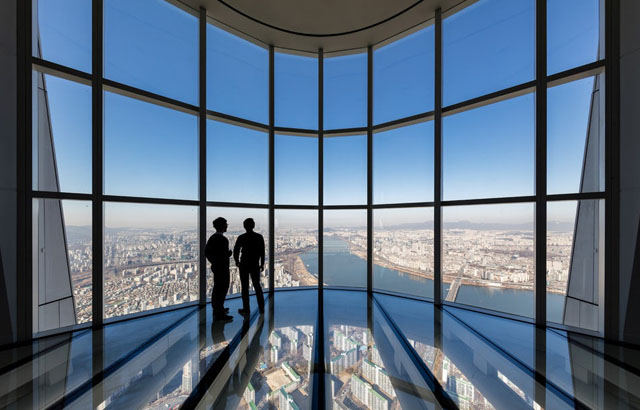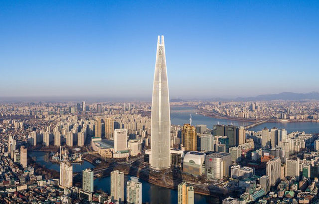 Inspirisana tradicionalnom korejskom keramikom, porculanom i kaligrafijom, srebrnog dizajna, „Lotte World Tower“ se uzdiže pola kilometra nad Seulom i peta je najviša zgrada na svetu. Projektovala ju je firma Kohn Pedersen Fox. Onima koji žude za visinom, ovaj neboder može da ponudi dosta jer se može pohvaliti najvišim na svetu vidikovcem sa staklenim dnom do koga se dolazi najbržim liftom na svetu.