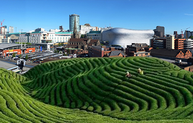 Projekat „Garden Hill“ je inspirisan visećim vrtovima Vavilona. Dizajn samog projekta je osmišljen kao oaza u kojoj će stanovati stanovnici različitih kultura kojih je sve više u Birmingemu. Dve 25-spratno raspoređene kule, sa visećim vrtovima na svakom nivou, daju mogućnost stanarima i posetiocima pristup privatnim i zajedničkim terasama i prostranom krovnom vrtu. Čitav blok je napravljen od CLT (unakrsno lameliranog drveta).