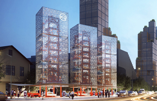 Kula za punjenje koji je opisao Ennead Lab kao „urbani svetionik kraj puta za električne automobile" - nudi vozačima mogućnost da brzo napune svoje vozilo, ili ga ostave da se pun duže.