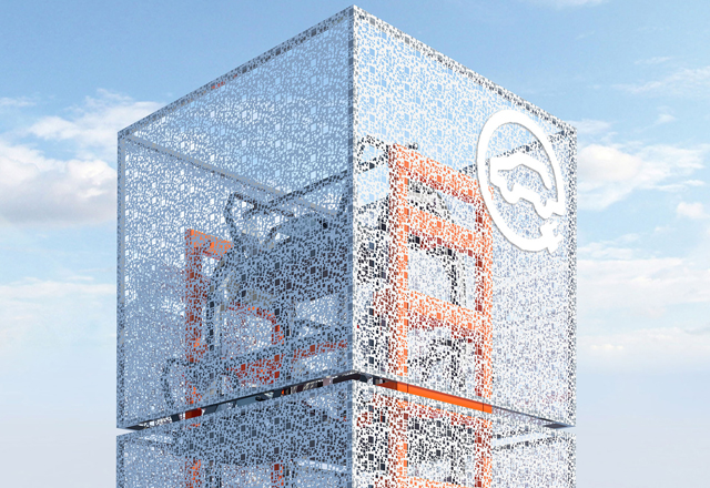 „Parking kule koje se nalaze iznad dela za brzo punjenje prekrivene su reflektujućim, perforiranim metalom, koji podseća na hromom ispunjenu istoriju estetike automobila i stvaraju efekat svetionika za one koji traže parking i punjenje", rekli su iz projektniog tima.